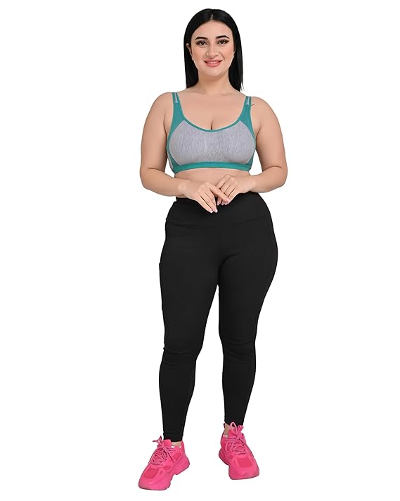 DISHAARA Women's Regal Bra B Cup - Grey & Green | Comfortable Everyday Lingerie | Size 34